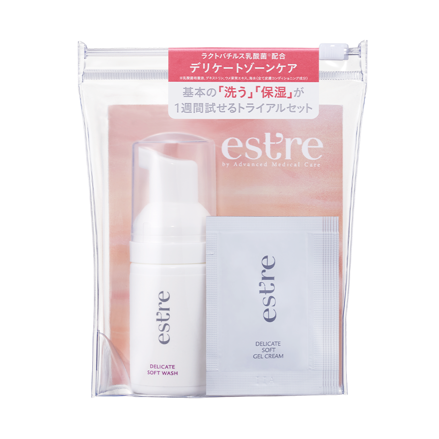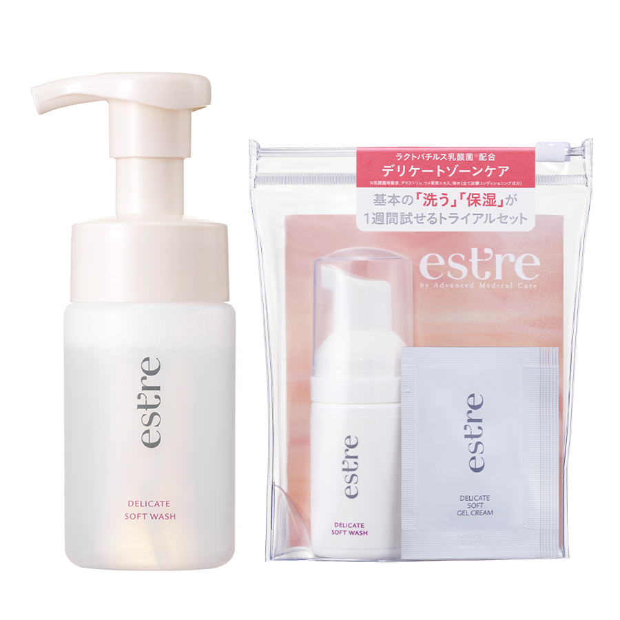 <セット内容> ・デリケートソフトウォッシュ 100mL ・【初回特典】トライアルセット(デリケートソフトウォッシュ 30mL/デリケートソフトジェルクリーム 2g×7包)